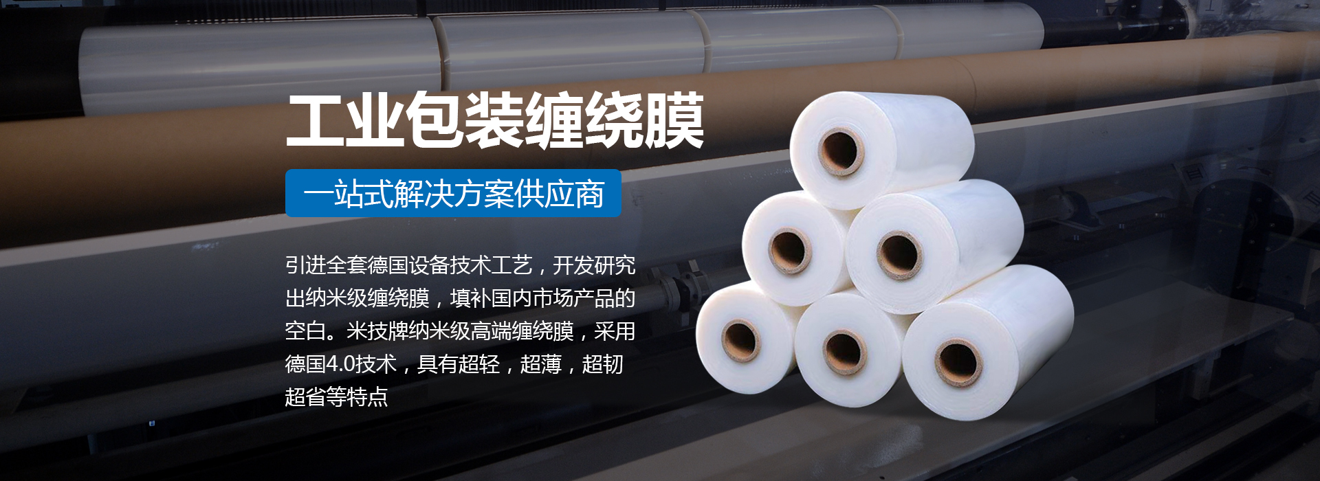 引進全套德國設(shè)備技術(shù)工藝,開發(fā)研究出納米級纏繞膜,填補國內(nèi)市場產(chǎn)品的空白。米技牌納米級高端纏繞膜,采用德國4.0技術(shù),具有超輕,超薄,超韌,超省等特點。